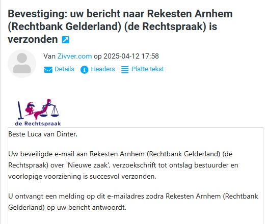 Maandagmiddag diende bij rechtbank Gelderland het door Joris Luteijn met steun van diverse belanghebbenden ingediende verzoekschrift tot ontslag van Anthony Migchels als voorzitter van Stichting de Florijn Nederland, alsmede tot benoeming van een nieuw bestuur.