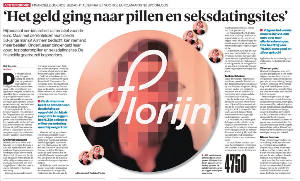 Op 2 maart is aangifte gedaan door een zakelijk rekeninghouder bij de Florijn, die het beu was om nog langer op zijn euro’s te moeten wachten als tegenwaarde voor de op 13 februari ingeleverde florijnen.